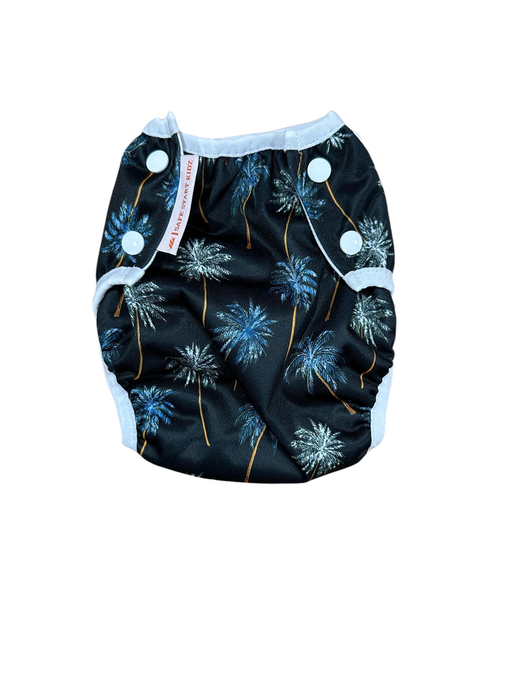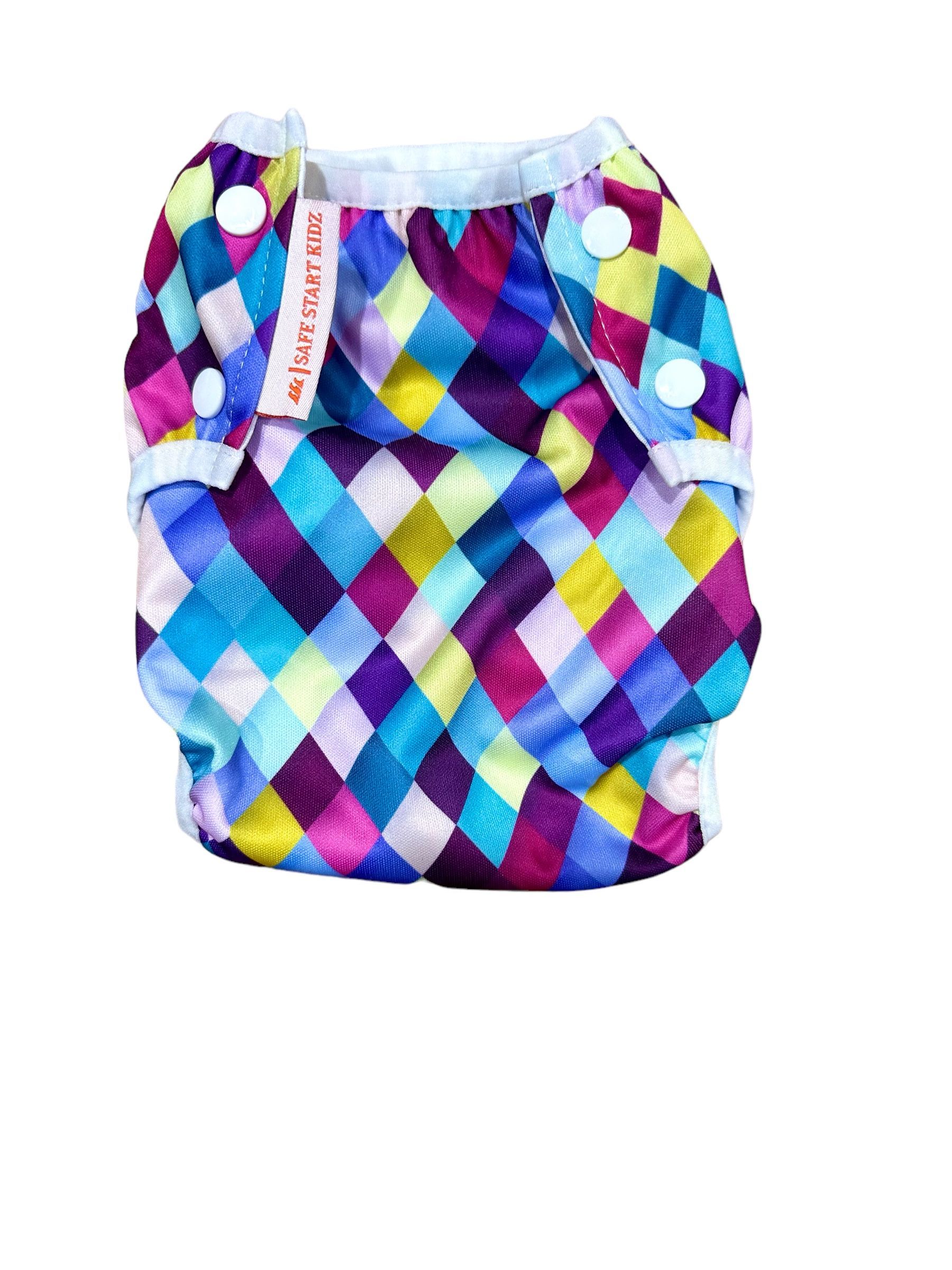 Environmentally friendly, reusable swim nappies in a variety of designs